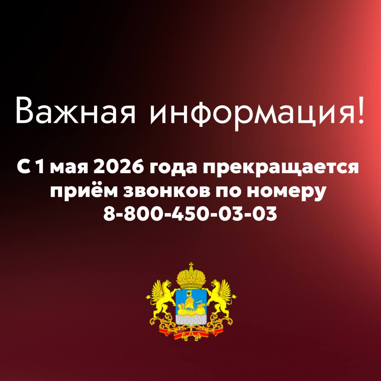 С 1 мая 2026 года прекращается приём звонков по номеру 8-800-450-03-03